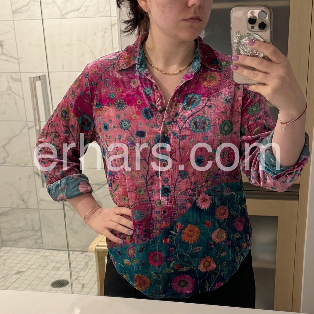Beautiful shirt! It has a really lovely subtle sheen to the fabric that makes it look much more expensive than it is. The contrasting floral design really pops. Highly recommend if you want to add some color to your wardrobe.