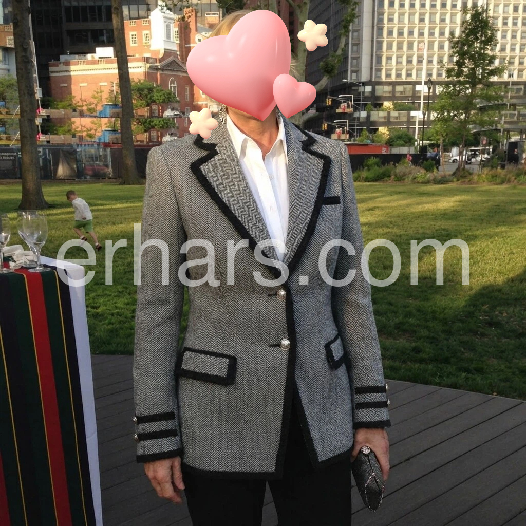 The cut is perfect—tailored but not stiff. It sits nicely on the body and the length is just right. The contrast trim frames the outfit beautifully, and it’s easy to style with a blouse and slacks. Great for work or events.