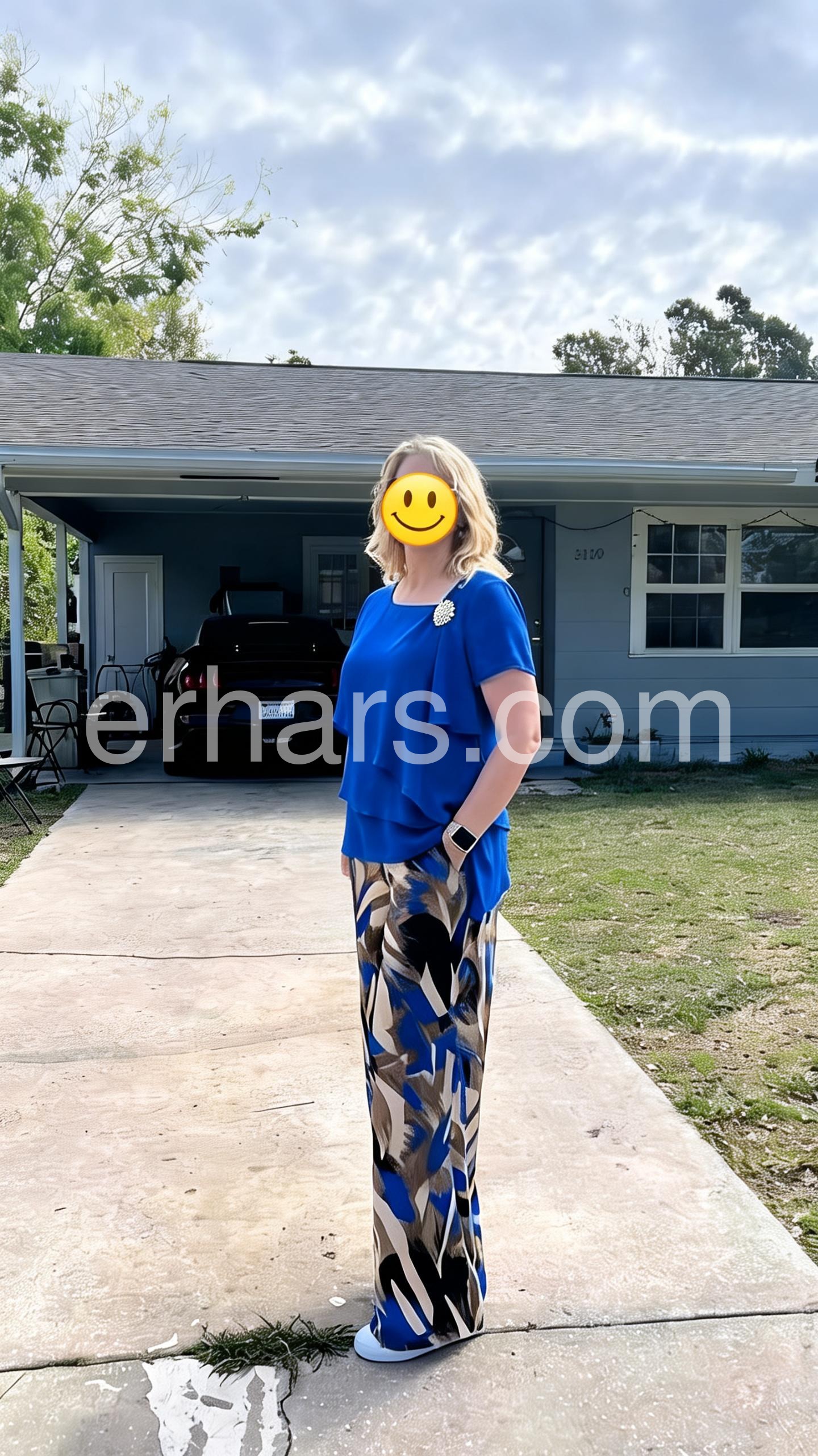 I am thrilled with this purchase! The colors in the pants match perfectly with the bright blue top. It looks like a very expensive boutique outfit but at a fraction of the cost. It packed well for my vacation with barely any wrinkles.