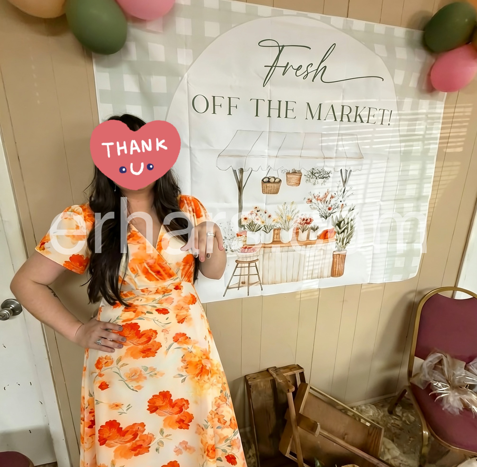 The vibrant orange watercolor floral print on a soft white base is eye-catching and cheerful.