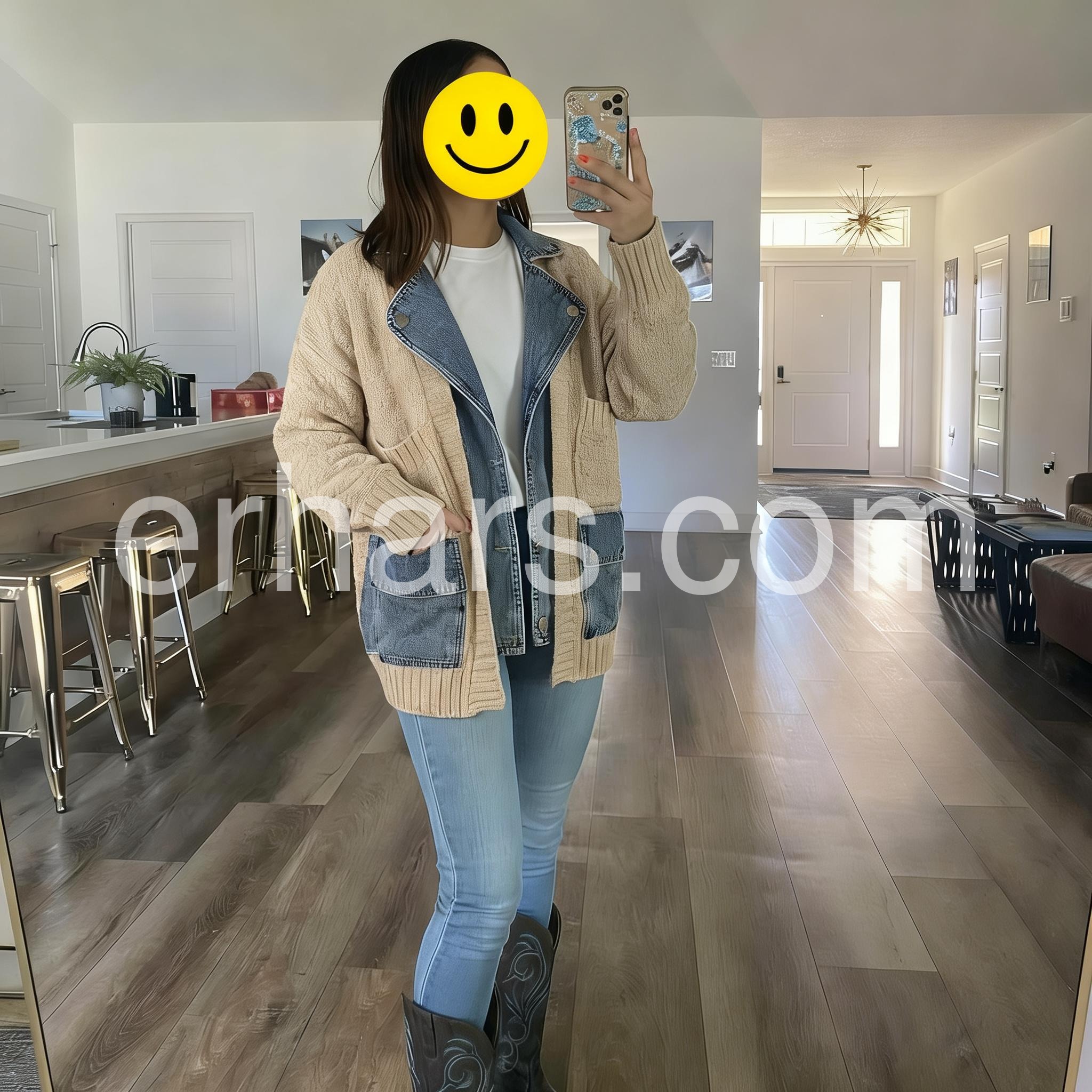 It’s a cute jacket very casual. I feel like I can wear it with any outfit, it makes me feel pretty.
