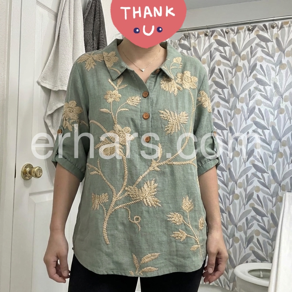 This blouse is a celebration of artisanal luxury. The muted sage base, adorned with intricate golden floral embroidery, evokes timeless sophistication.