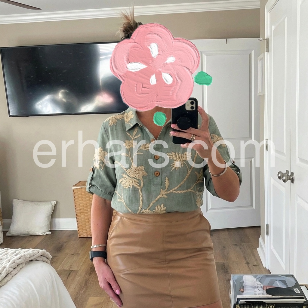 Sage Floral Print Half Placket Blouse