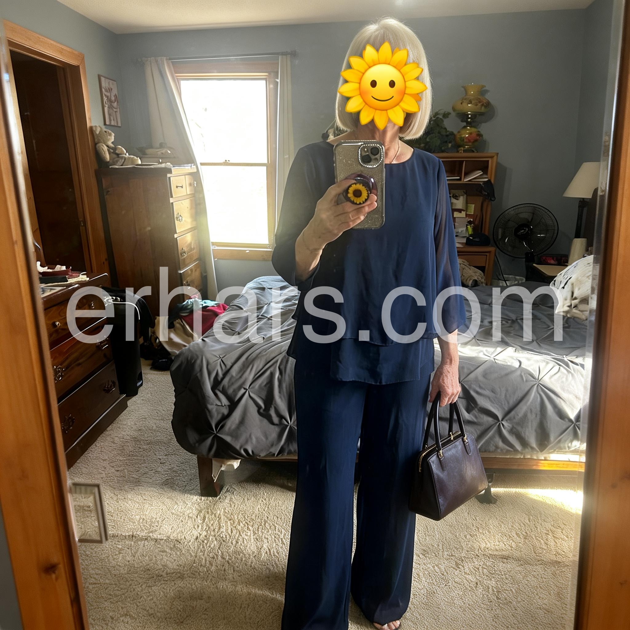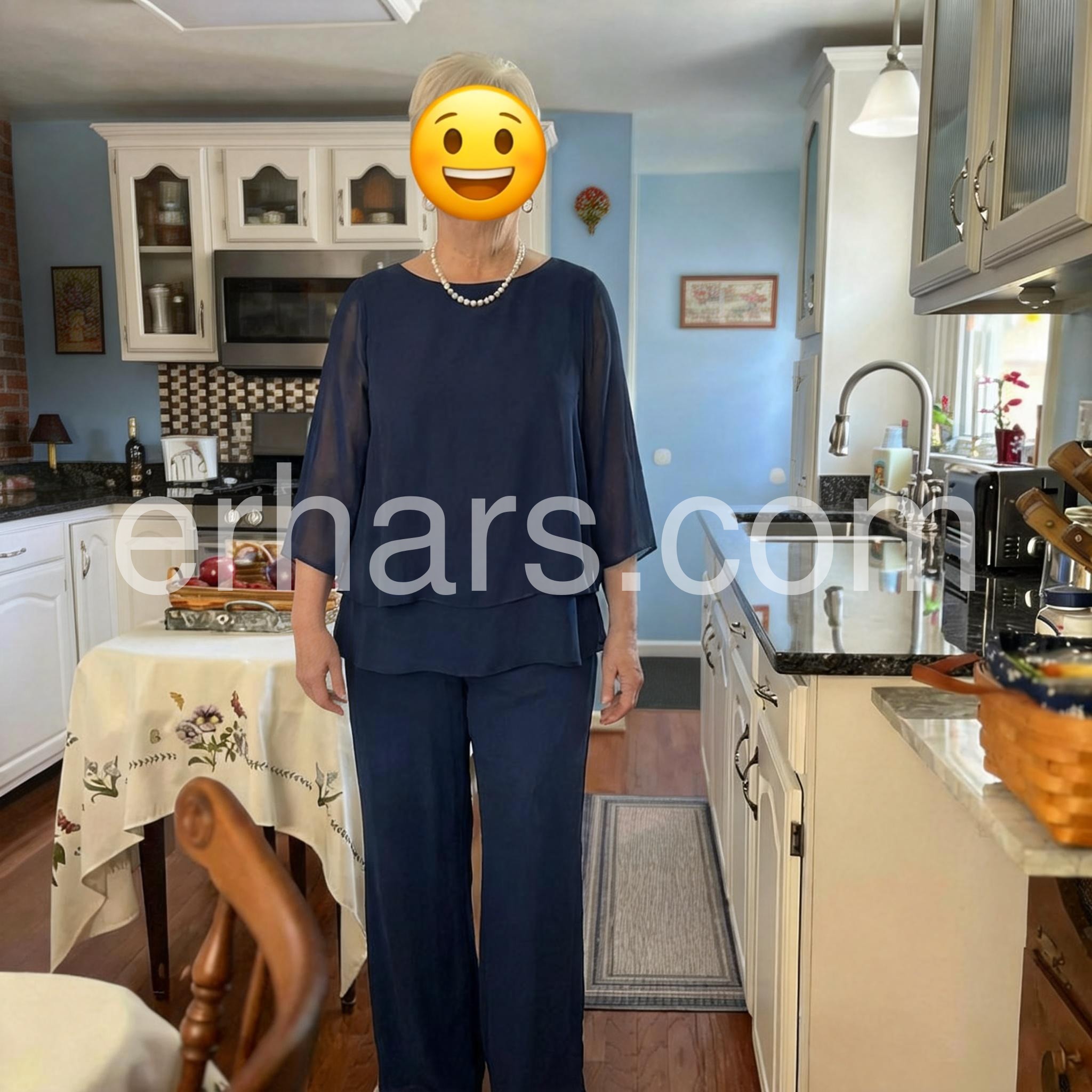 I wore this beautiful navy set to my son's wedding and received so many compliments. It is incredibly elegant and the sheer sleeves add a perfect touch of class. Highly recommend for any formal event!