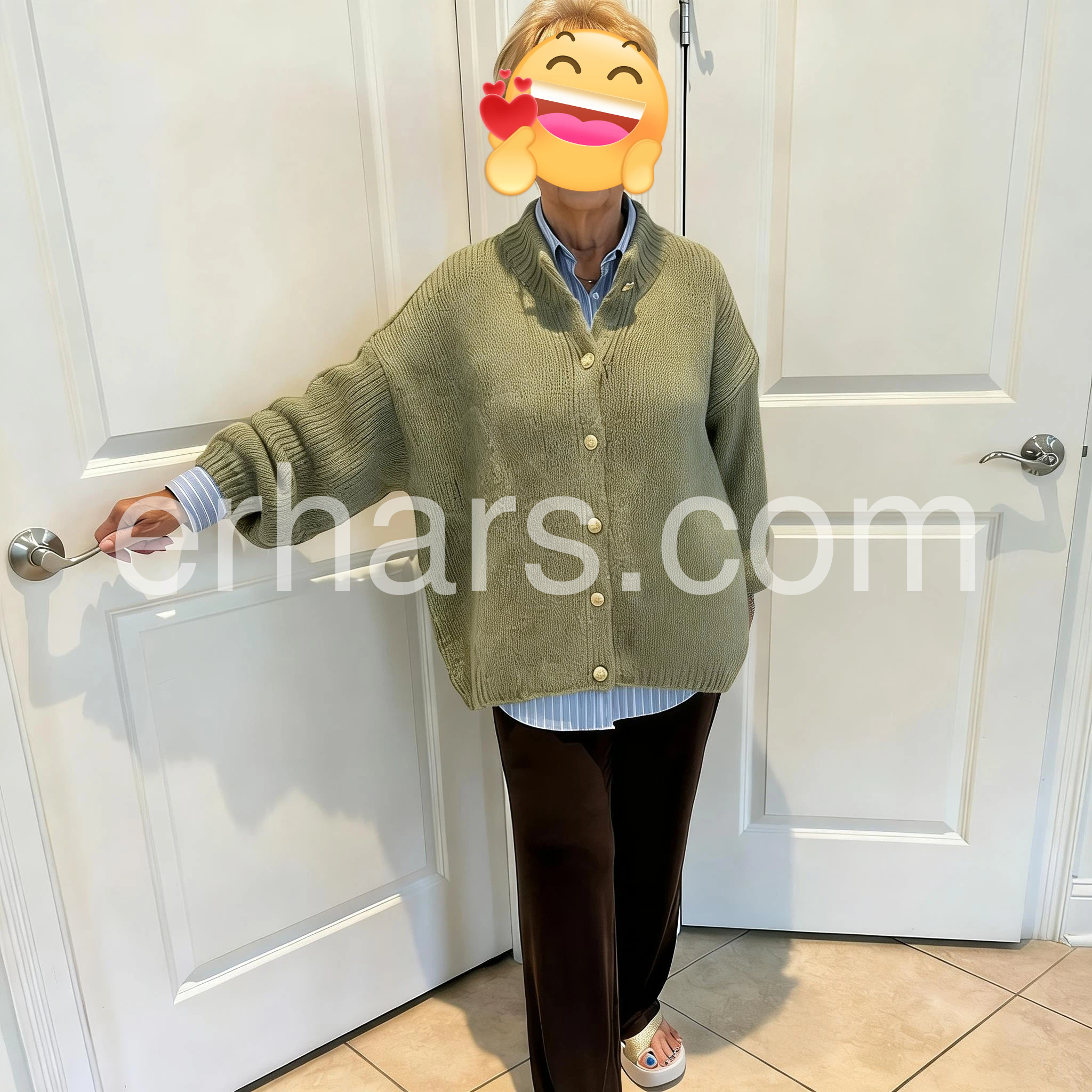 This cardigan is the definition of comfort and style! The thick fuzzy knit keeps me warm without being bulky, and the oversized silhouette is so flattering on all body types. The high neckline with gold buttons adds a polished touch, and the batwing sleeves give it a trendy, laid-back feel. It’s the perfect piece to throw on over any outfit for an instant cozy chic look, and the sage green is such a timeless color. I’ll be wearing this all winter long!