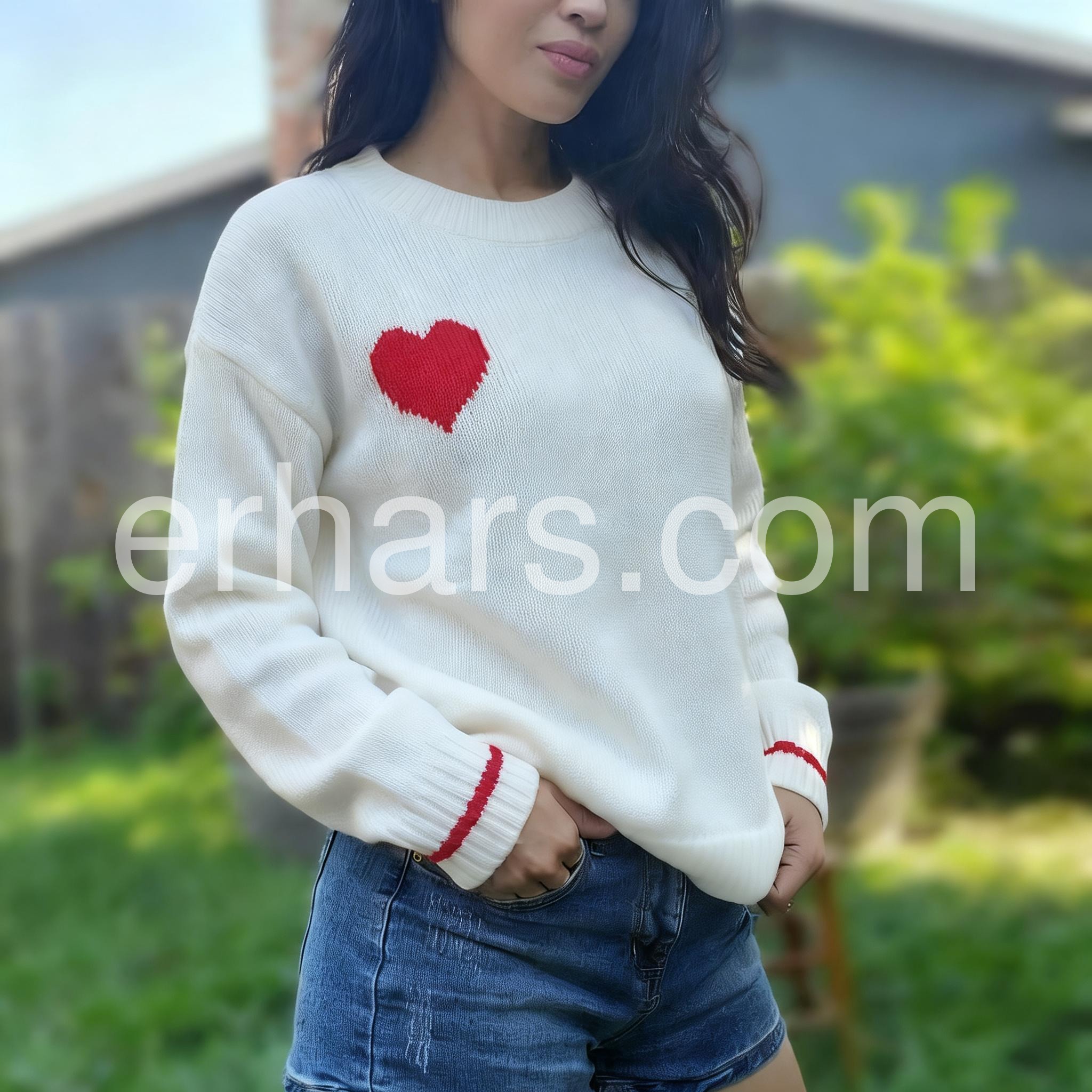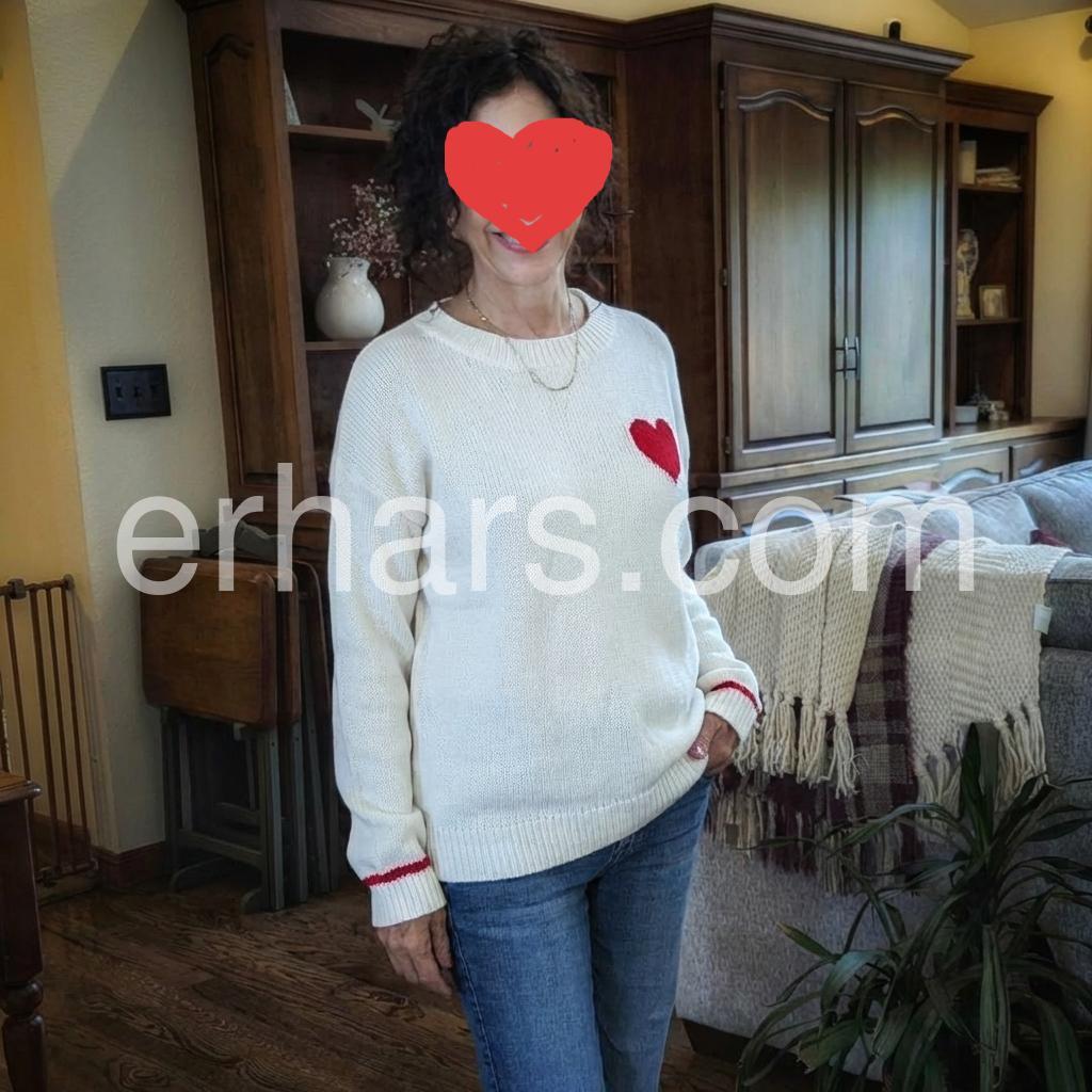 I adore this sweater! It's incredibly beautiful with its white color and red hearts design. The crew neck and long sleeves give it a classic look, while the loose, casual fit makes it perfect for everyday wear on chilly days. I adore it and would highly recommend it to anyone looking for a cozy and stylish addition to their wardrobe!