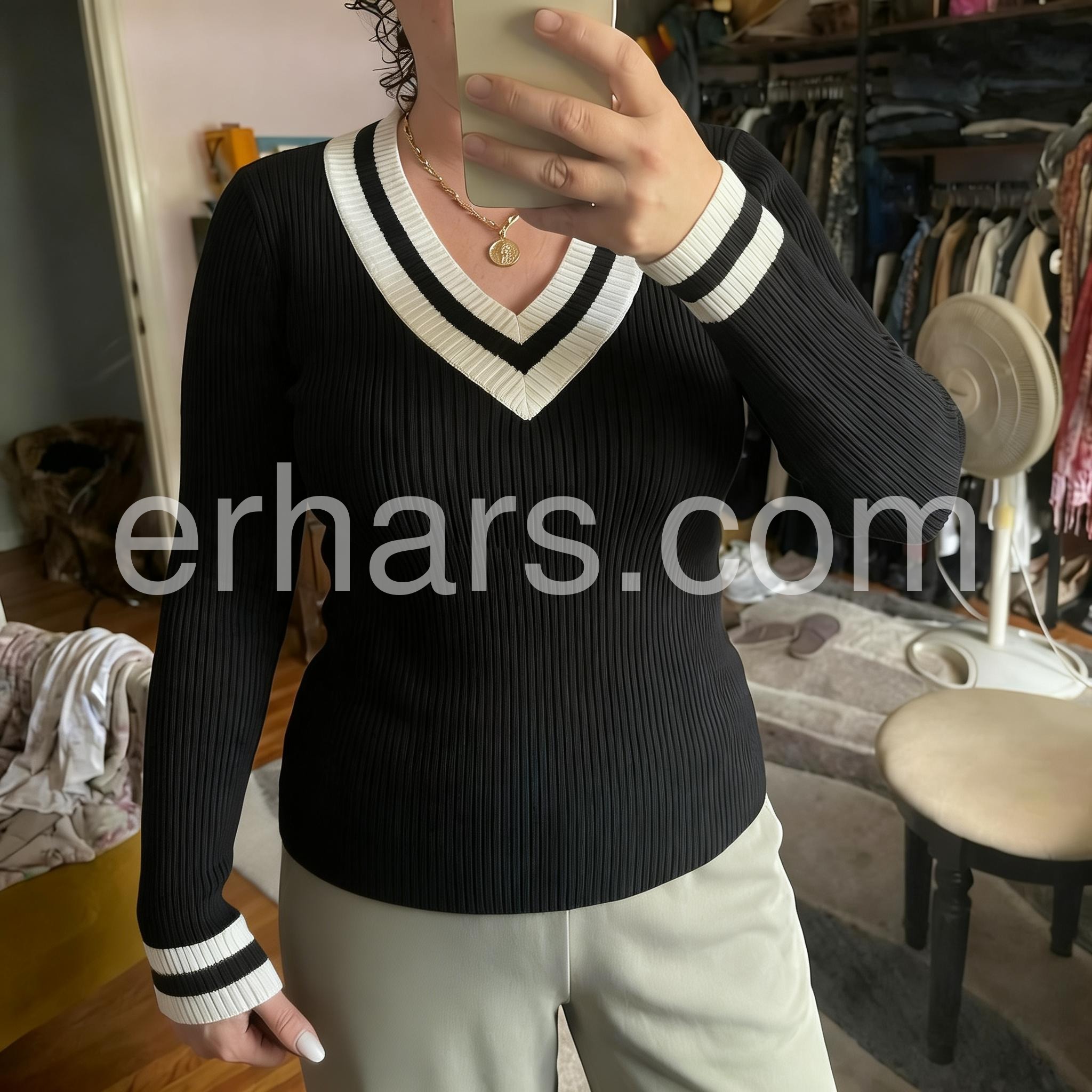 - Neckline: V-Neck