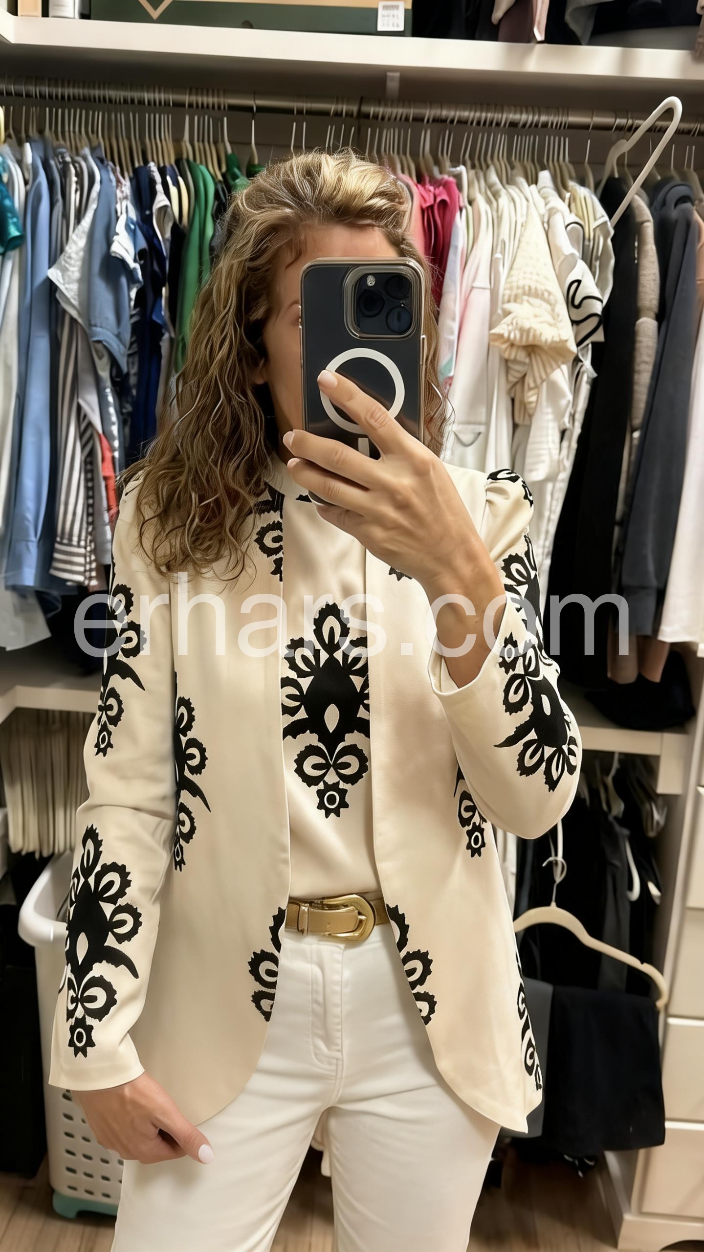 The contrast of the bold black floral design on the ivory background is stunning. It has a vintage but modern vibe that I completely adore.